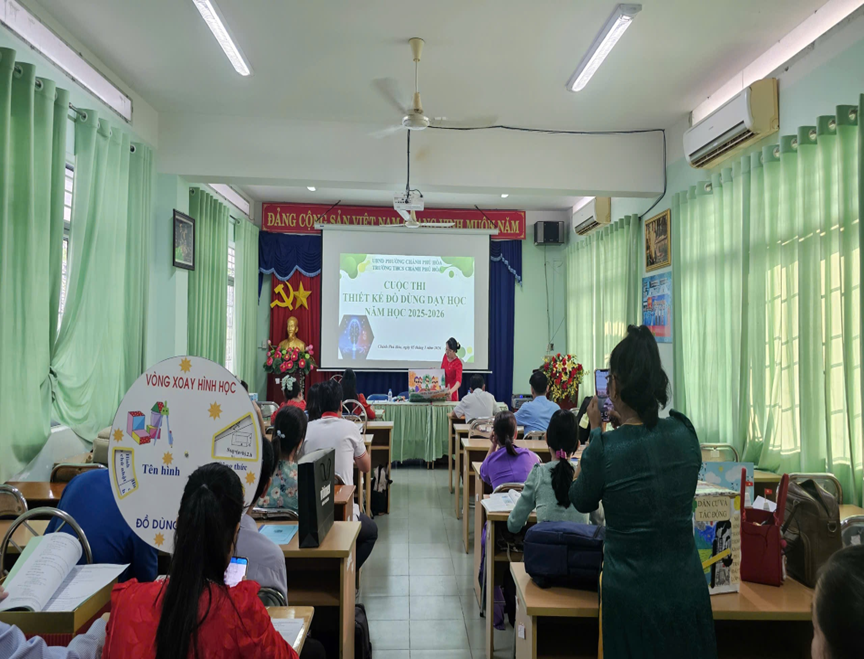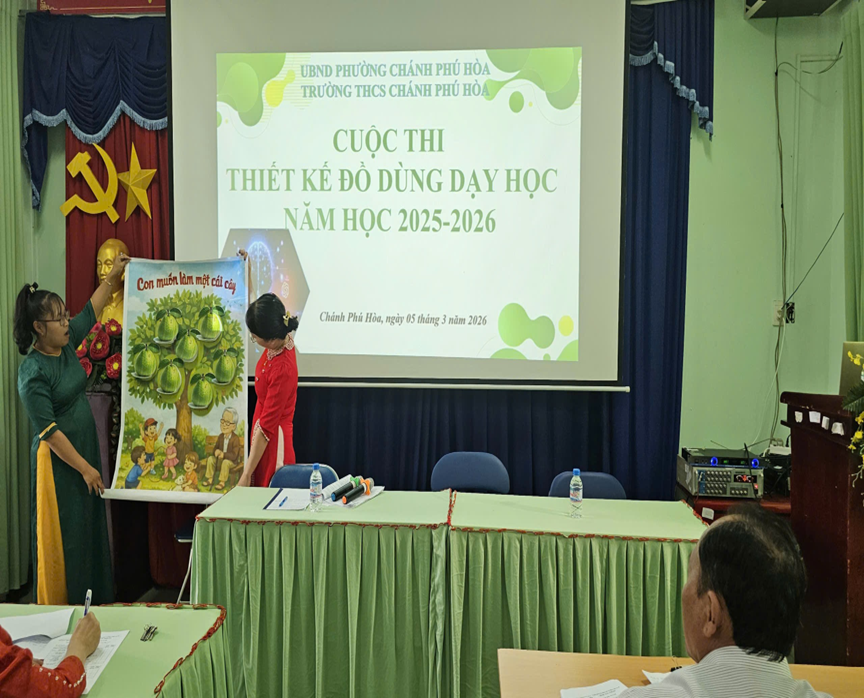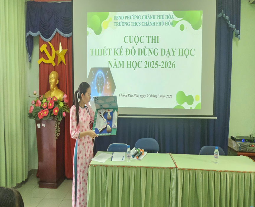 Hưởng ứng “Hội thi thiết đồ dùng dạy học năm học: 2025-2026” do Trường THCS Chánh Phú Hòa phát động và tổ chức, các giáo viên từ các tổ bộ môn trong trường đã đưa ra các ý tưởng thiết kế nhiều mô hình rất trực quan, sáng tạo, khoa học, hữu ích và thẩm mỹ như: “Mô hình Quang hợp ở thực vật kết hợp Hô hấp tế bào và Chu trình Carbon”, “Vẽ kí hoạ dáng người, nhóm người, tượng người vào trò chơi ai vẽ nhanh hơn trong môn mỹ thuật 9”, “Mô hình ghép tranh văn bản: Thầy Bói xem voi” , “Mô hình: Hành trình khám phá Trái Đất - Lớp 6”… Thông qua các đồ dùng này học sinh có thể dễ dàng thực hành các hoạt động học tập. Từ đó giúp các em chiếm lĩnh và làm chủ kiến thức một cách nhanh nhất.