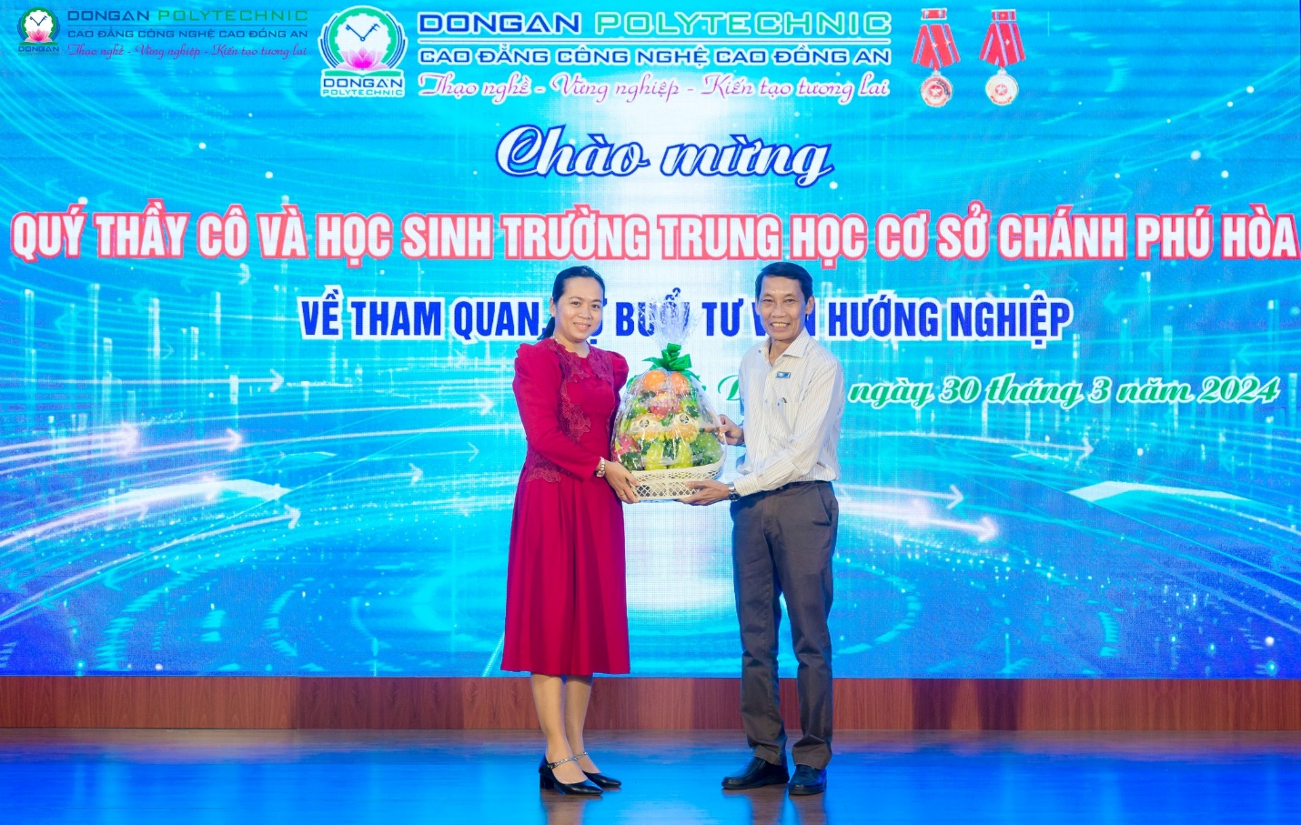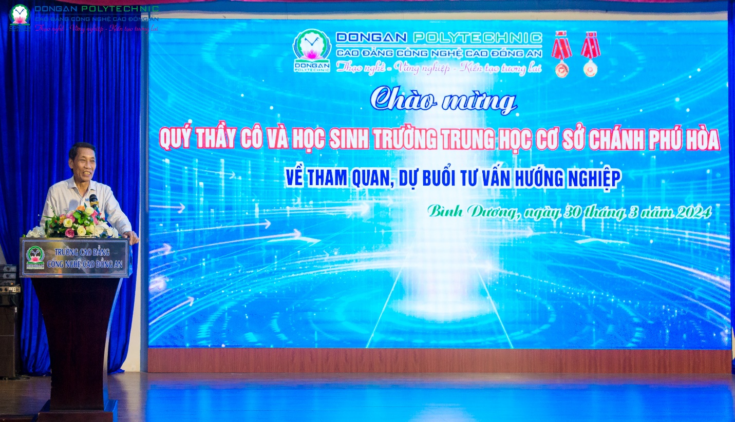 Chiều ngày 30/3/2024, gần 200 học sinh cùng quý thầy cô là GVCN khối 9 và Ban giám hiệu trường THCS Chánh Phú Hòa đã đến tham quan và dự buổi tư vấn hướng nghiệp, lựa chọn ngành nghề tại  trường Cao đẳng Công nghệ cao Đồng An (DAP).