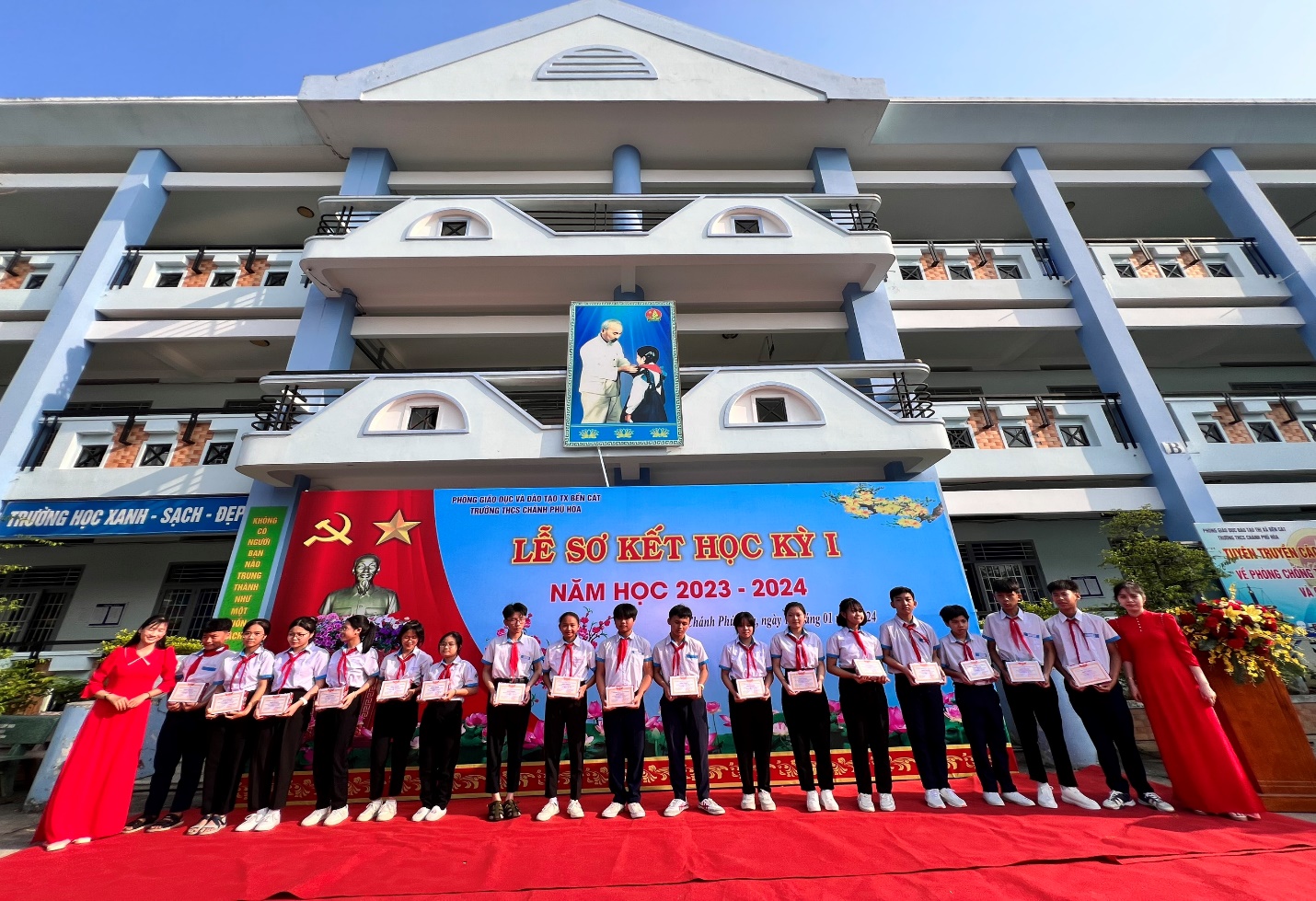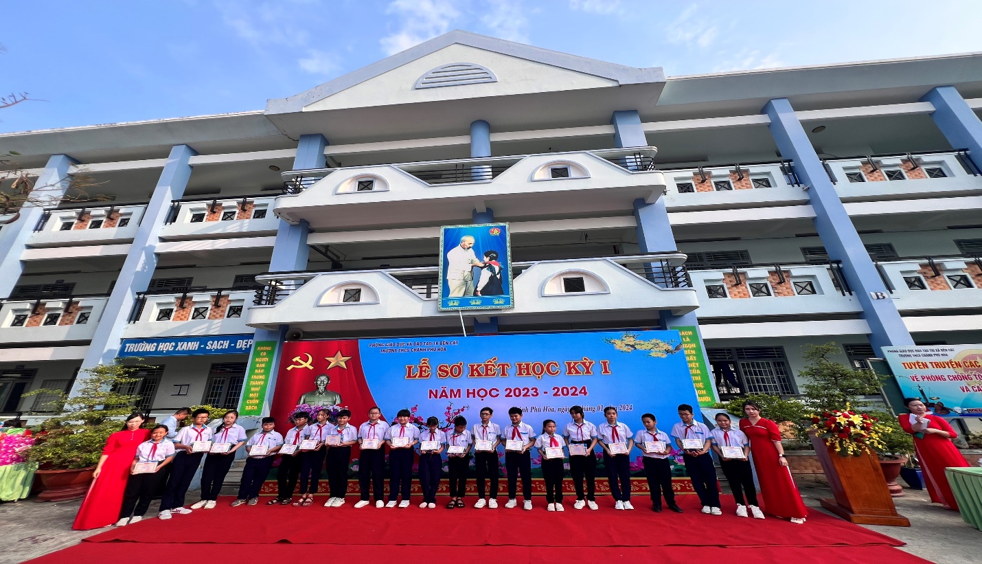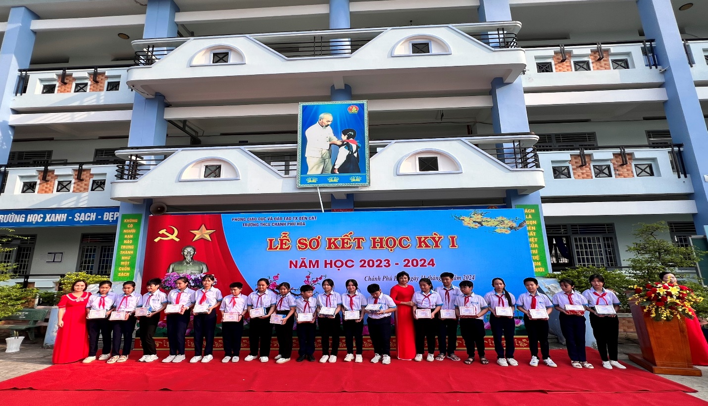 Trong không khí rộn ràng, tươi vui, ấm áp của những ngày cuối năm, được sự cho phép của Phòng Giáo dục và Đào tạo Thị xã Bến Cát, sáng ngày 11/1/2024, các thầy cô giáo cùng toàn thể học sinh trường THCS Chánh Phú Hoà đã tổ chức lễ sơ kết học kì I năm học 2023 – 2024 nhằm đánh giá tổng kết các hoạt động giáo dục, tuyên dương, khen thưởng những kết quả học tập và rèn luyện toàn diện của học sinh, đồng thời đề ra phương hướng nhiệm vụ trong học kỳ II.