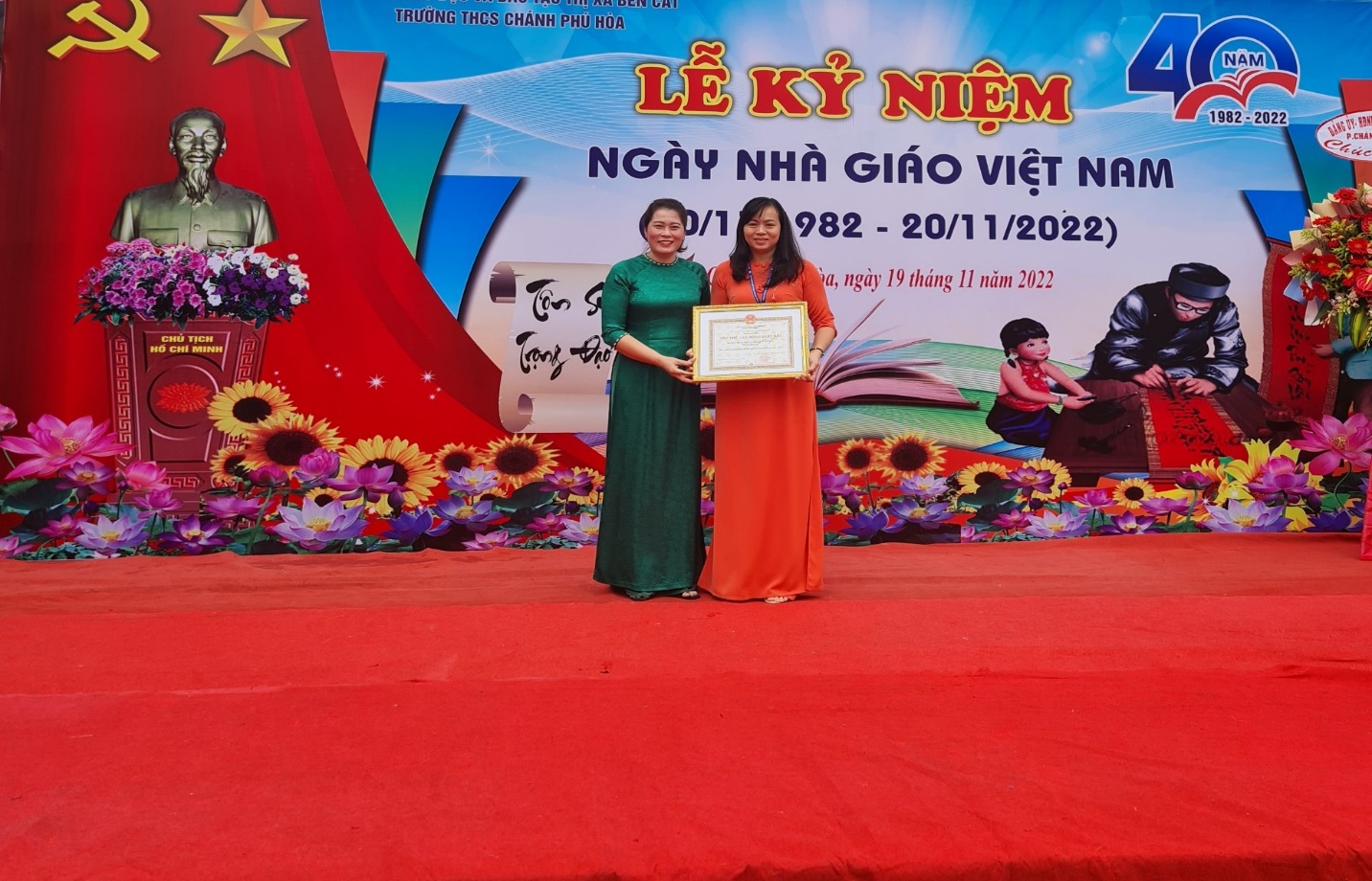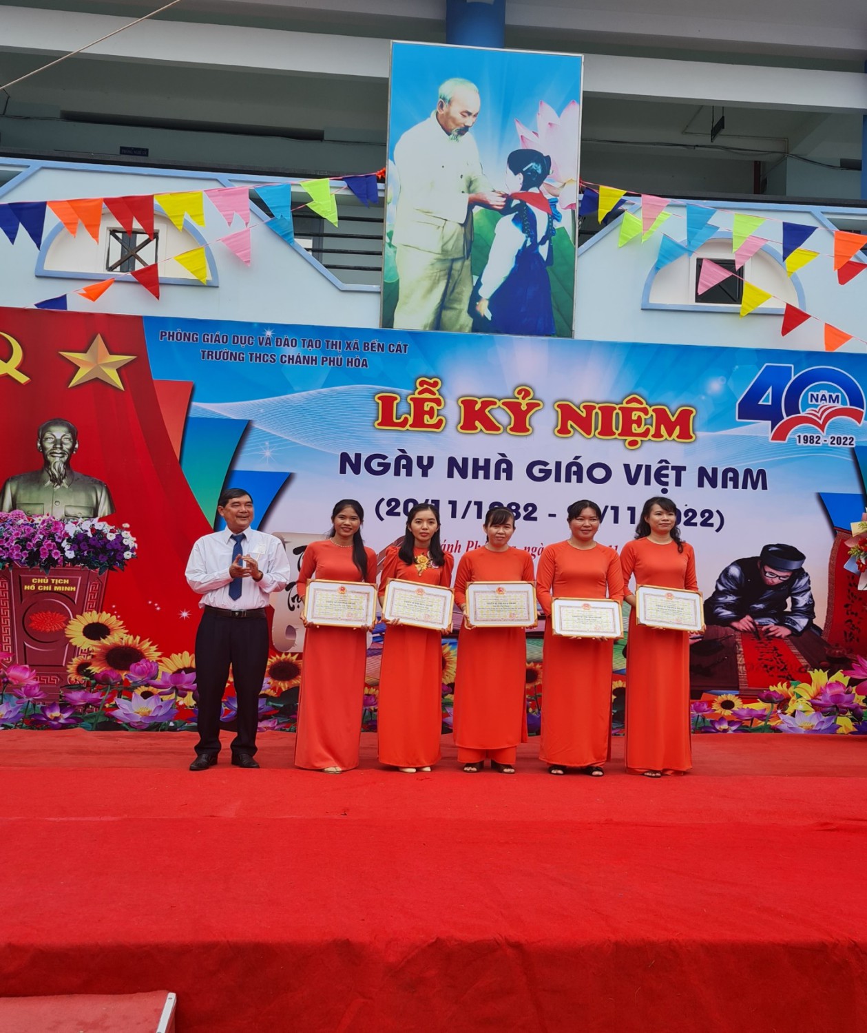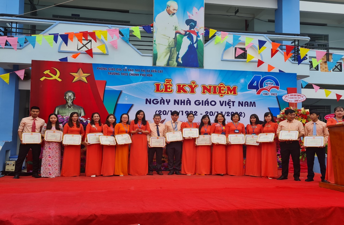 Hòa chung trong không khí tưng bừng, phấn khởi của các thế hệ giáo viên và học sinh trên cả nước chào mừng kỷ niệm 40 năm ngày Nhà giáo Việt Nam (20/11/1982 - 20/11/2022), ngày 19 tháng 11 năm 2022, trường THCS Chánh Phú Hòa đã long trọng tổ chức họp mặt 40 năm ngày Nhà giáo Việt Nam. Về dự buổi họp mặt kỷ niệm ngày nhà giáo việt Nam 20/11 có bà Lê Thị Hồng Châu, chuyên viên phòng Phòng Giáo dục & Đào tạo thị xã Bến Cát; bà Nguyễn Thị Hồng Hoa – Đại diện phường Chánh Phú Hòa; ông Phạm Đình Phú – Trưởng ban đại diện cha mẹ học sinh, ông Phan Trọng Chương – Phó ban đại diện cha mẹ học sinh và các ông bà trong ban đại diện cha mẹ học sinh nhà trường. Về phía nhà trường có cô Huỳnh Thị Ngọc Bích – Bí thư chi bộ, Hiệu trưởng nhà trường; cô Trương Thị Mộng Tuyền – Phó Hiệu trưởng nhà trường, CTCĐ nhà trường; ông Đỗ Quốc Tiến – Phó Hiệu trưởng trường THCS Chánh Phú Hòa. Buổi họp mặt hân hạnh được đón tiếp quý thầy cô Nguyên là Hiệu trưởng và giáo viên về hưu của nhà trường và hiện diện của toàn thể cán bộ, giáo viên, công nhân viên nhà trường cùng sự có mặt của 1347 em học sinh của trường THCS Chánh Phú Hòa để cùng bày tỏ lòng tri ân đến quý thầy cô giáo.
