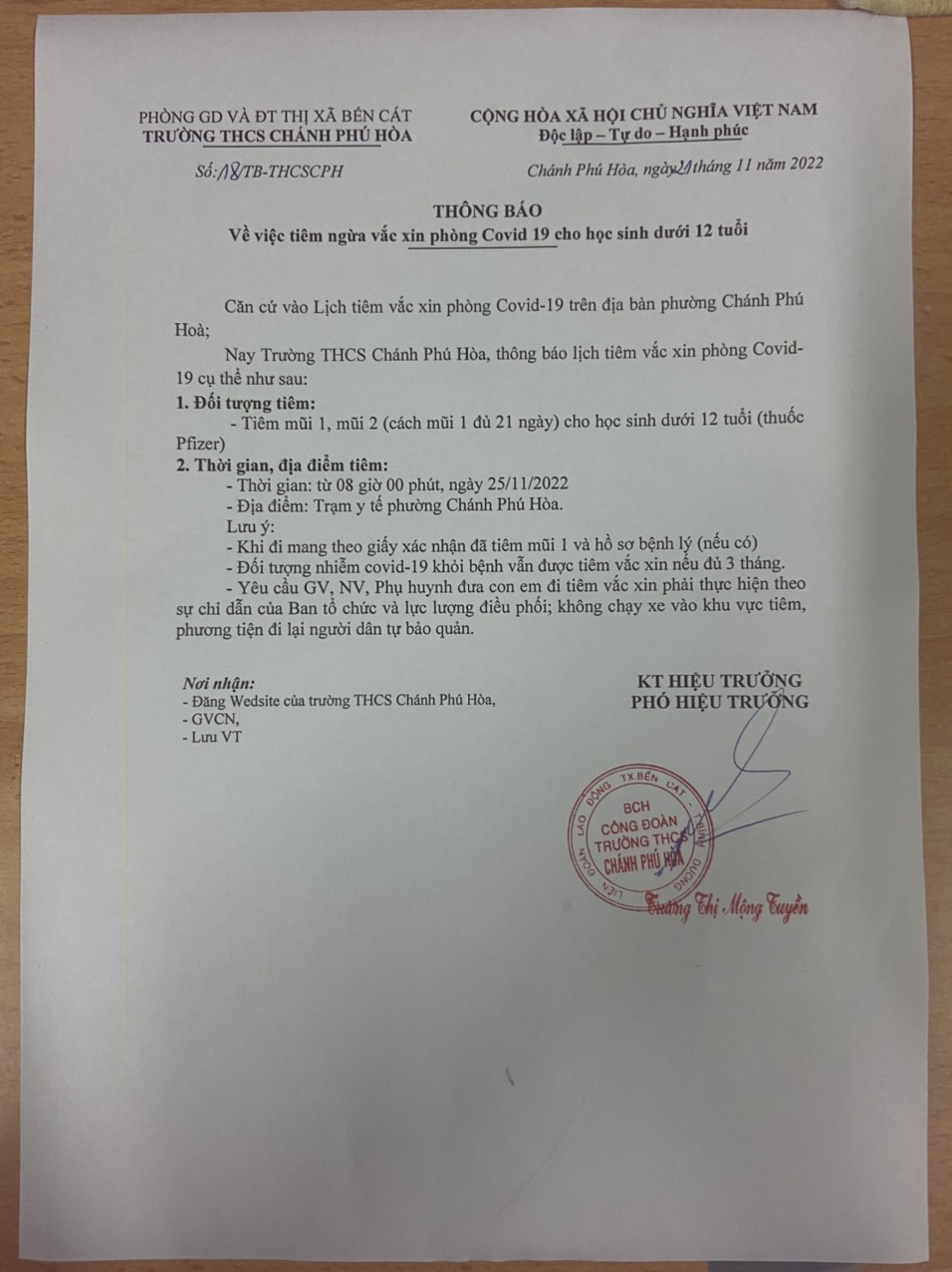 V/v Tiêm Ngừa Vắc xin Phòng Chống Covid Cho HS Dưới 12 Tuổi