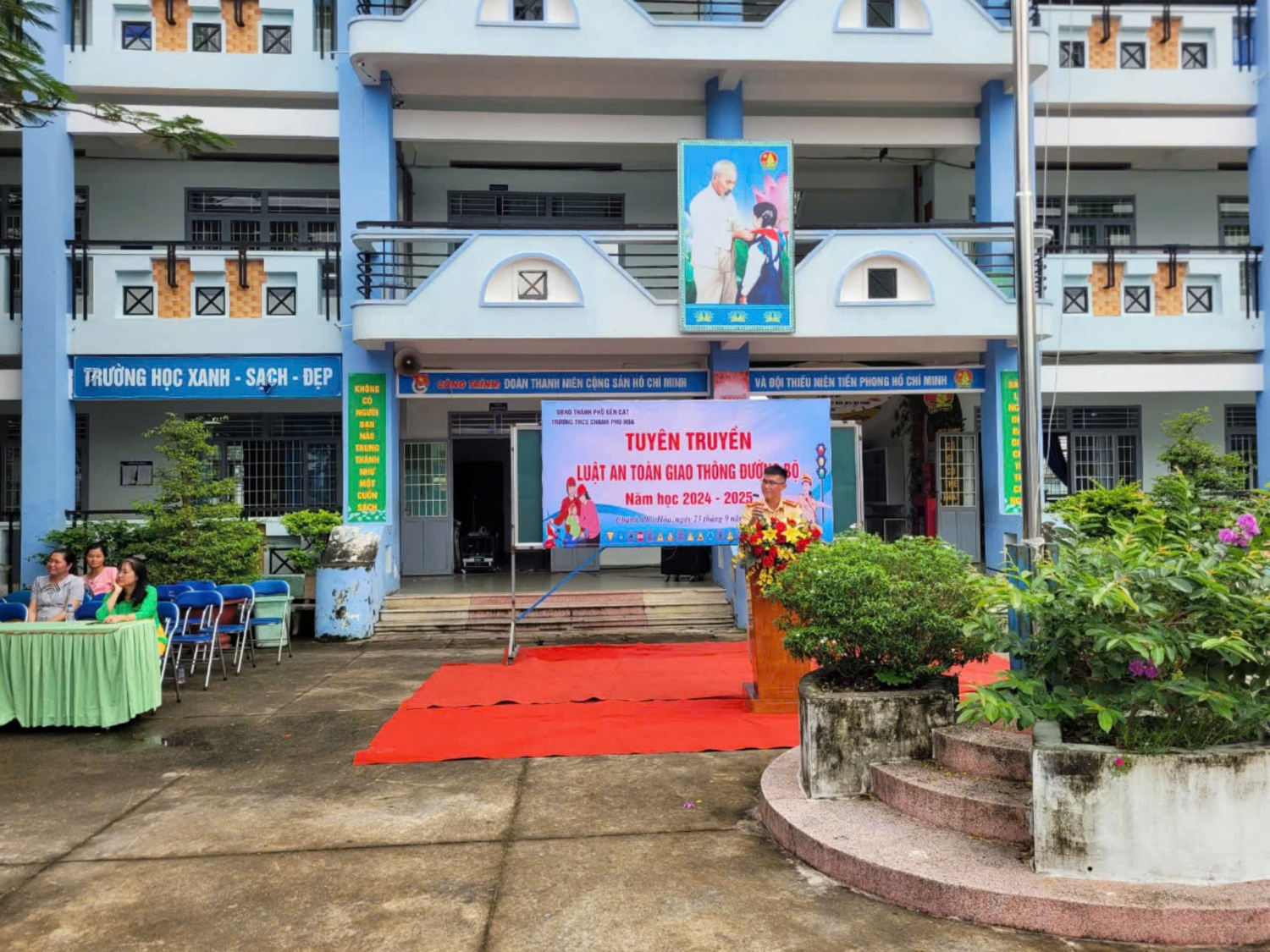 Thực hiện Chỉ thị số 31 của Thủ tướng Chính phủ về các giải pháp đảm bảo an toàn giao thông đối với học sinh, Vào thứ 2 ngày 23 tháng 9 năm 2024, trong tiết Sinh hoạt chào cờ đầu tuần, tại Trường THCS Chánh Phú Hòa, thành phố Bến Cát, Trường THCS Chánh Phú Hòa đã phối hợp với Phòng Cảnh sát giao thông thành phố Bến Cát tổ chức tuyên truyền các kiến thức tham gia giao thông an toàn cho toàn thể học sinh và giáo viên.
