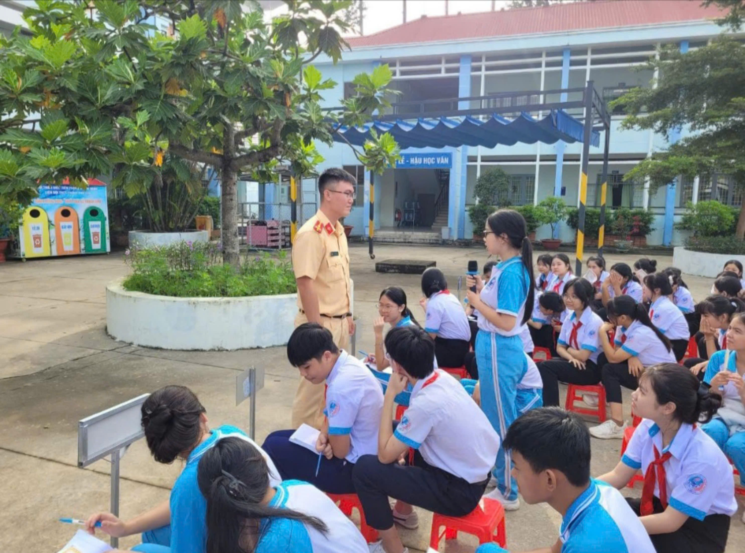 Tại buổi tuyên truyền, những kiến thức pháp luật về an toàn giao thông, kỹ năng tham gia giao thông an toàn, phòng ngừa tai nạn giao thông đã được cán bộ Công an thành phố truyền đạt đến các e học sinh dưới nhiều hình thức trực quan và các câu hỏi dễ hiểu, dễ tiếp thu.